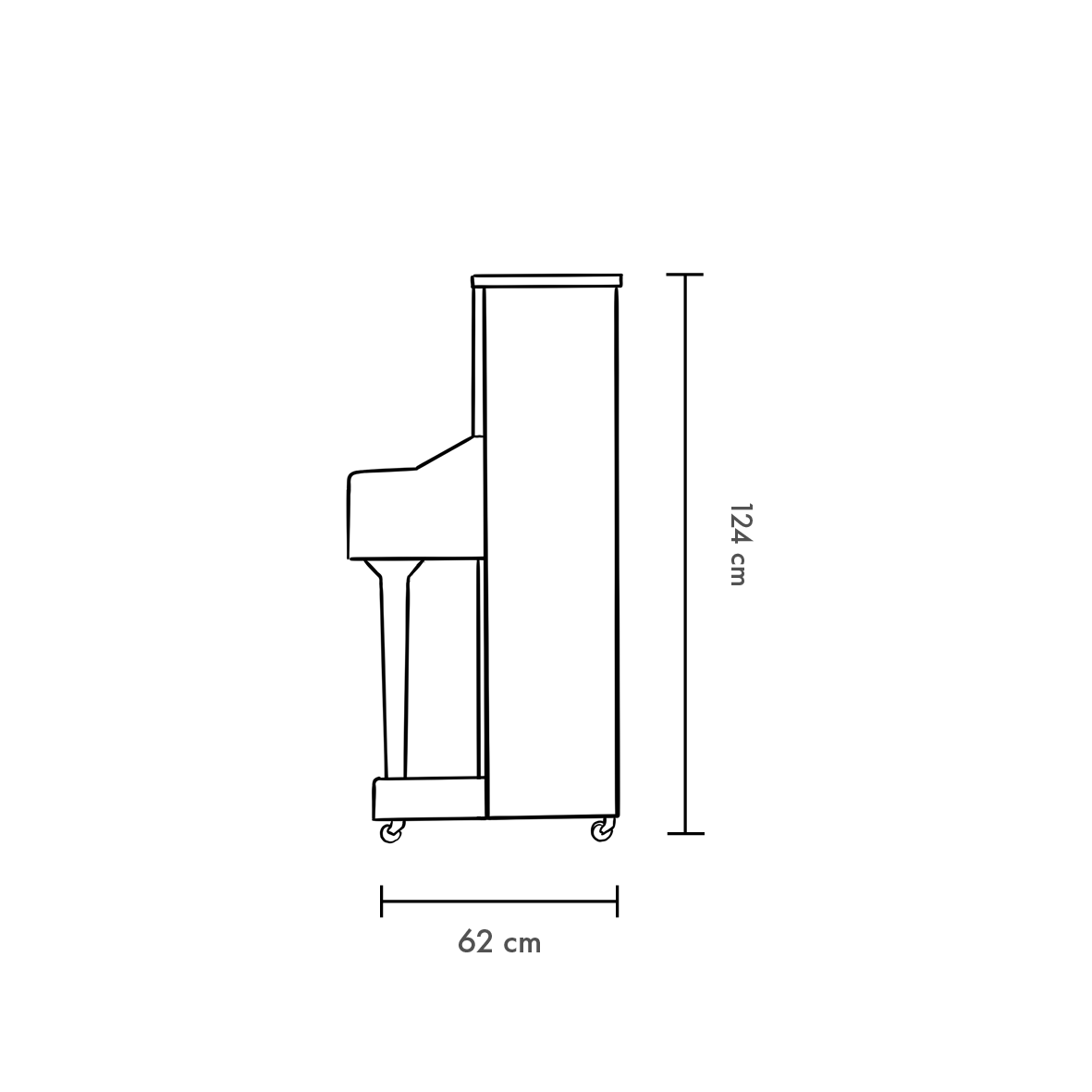 Tous nos pianos droits sont conçus et réalisés avec le même soin méticuleux et incorporent les mêmes principes de construction que les pianos à queue.