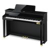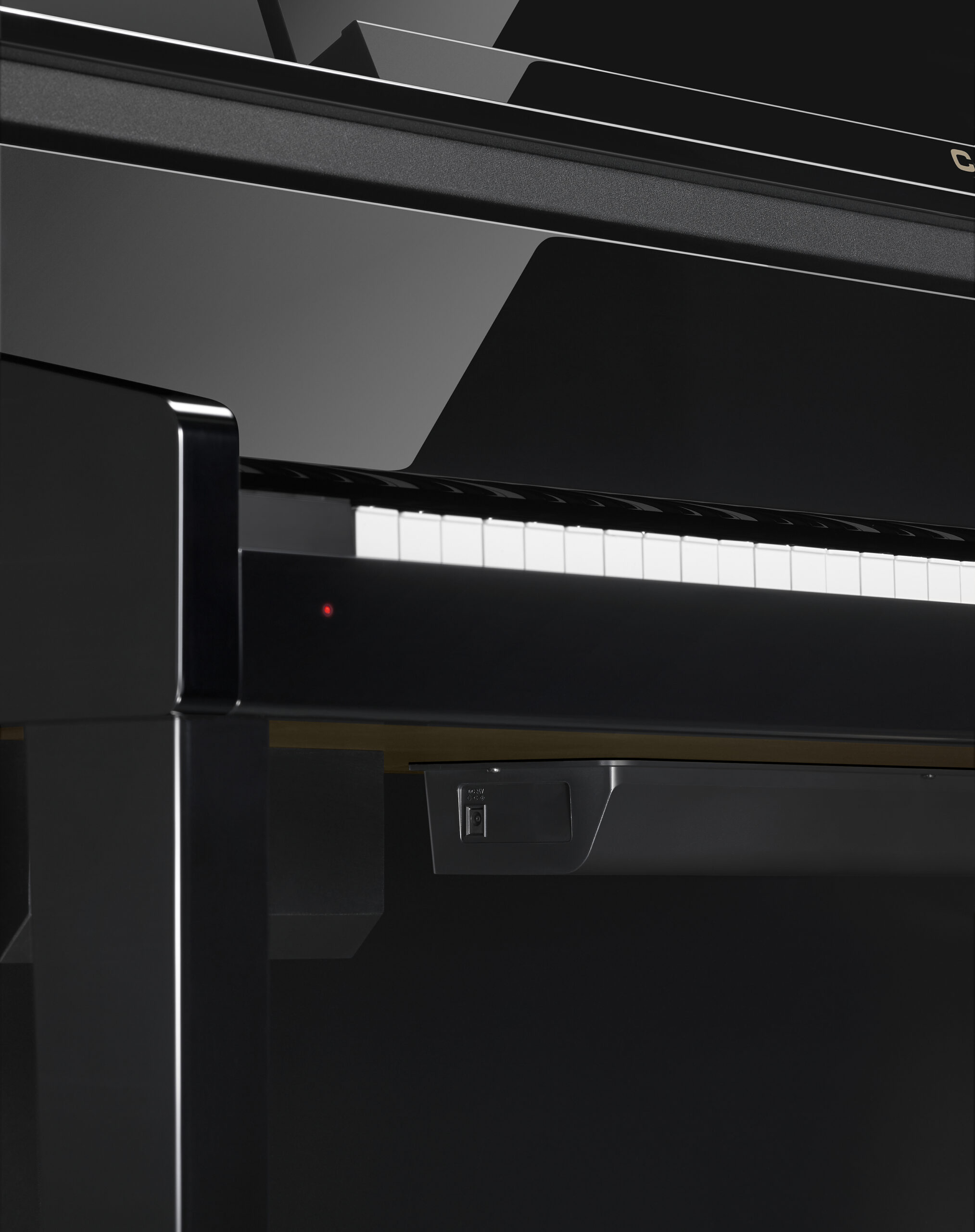 L’un des tous meilleurs hybrides du moment, et assurément le meilleur rapport qualité/prix du genre ! avec le toucher d’un vrai C.Bechstein !! Les modèles de la série GP de Casio tiennent plus que leurs promesses. Élaboré en collaboration avec l’allemand Bechstein qui a entre autre fourni les claviers en bois, le GP-510 BP propose 35 sonorités dont 3 très belles de pianos à queue, dénommées “Berlin”, “Hambourg” et “Vienne” derrière lesquelles on identifie les prestigieuses marques Bechstein, Steinway et Bösendorfer… Le GP-510 BP vous permet en plus de choisir un type d’ambiance et d’époque particulières pour mieux baigner dans l’atmosphère des œuvres que l’on décide d’aborder. Le couvercle se relève et laisse voir une véritable mécanique à marteaux qui, couplée au clavier en bois naturel, propose de belles sensations de jeu au pianiste. L’amplification est de qualité et distille des tessitures plutôt veloutées et classiques. Le couvercle se relève en libérant plus de volume et en laissant voir l’action des marteaux et de la mécanique. La volonté de Casio est claire sur ce produit : proposer un instrument le plus proche possible du piano, sobre d’apparence, disposant de peu de fonctions mais toutes de qualité, et d’une utilisation simple et instinctive. L’objectif est atteint, le piano est vraiment bluffant à jouer. Il comblera tout pianiste exigeant en quête d’un instrument de haute qualité. Les fonctions d’enregistrement sont vraiment agréables pour les pianistes désirant se réécouter ou jouer seul du 4 mains ! La finition noir brillant est d’un chic absolu… Sa version laquée haut de gamme, le GP-510 BP, a été récompensé par le magazine Diapason d’un Diapason d’or.