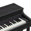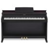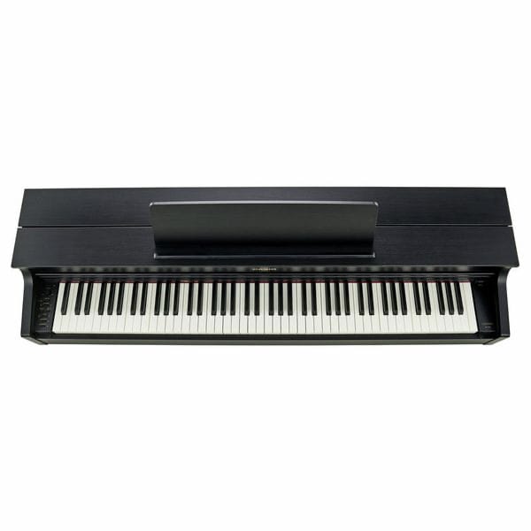 Déclinaison esthétique du modèle PX-870, ce piano Casio Celviano AP-470 propose deux nouvelles sonorités de pianos à queue très réussies, bénéficie d’une amplification 2x20w faisant vraiment la différence avec les modèles inférieurs. On trouve également un couvercle pouvant s’ouvrir comme celui d’un piano à queue, permettant au son de mieux se diffuser spatialement. Le timbre est particulièrement dense et chaleureux sur ce modèle. Les sensations du pianiste se trouvent également améliorées par le revêtement des touches blanches, en ivoire de synthèse, très sensuel sous les doigts. Le toucher léger ne permettra pas un apprentissage idéal durablement à défaut d’un contre poids suffisant sous les doigts mais un pianiste souhaitant s’évader vers d’autres contrées musicales y trouvera un compagnon de jeu très performant, doté de fonctions pédagogiques comme l’enregistreur et de 22 sonorités de très belle qualité. Enfin, la connexion avec smartphone ou tablette sur l’application chordana play apporte une dimension ludique indéniable. Les finitions générales sont impeccables et le rapport qualité / prix exceptionnel.