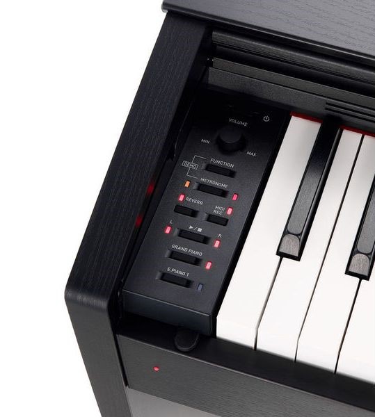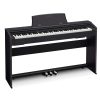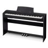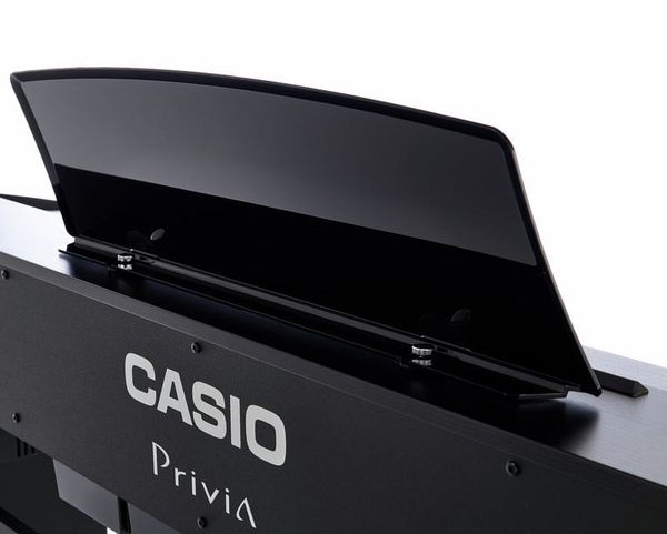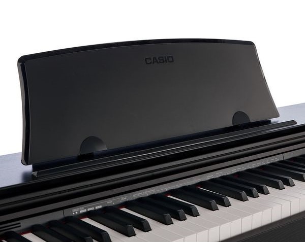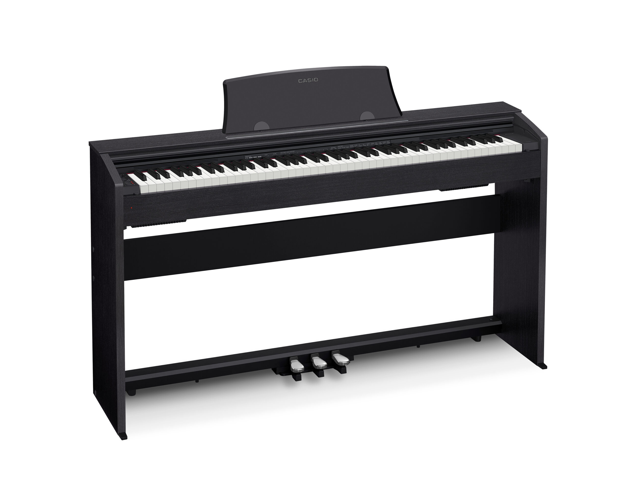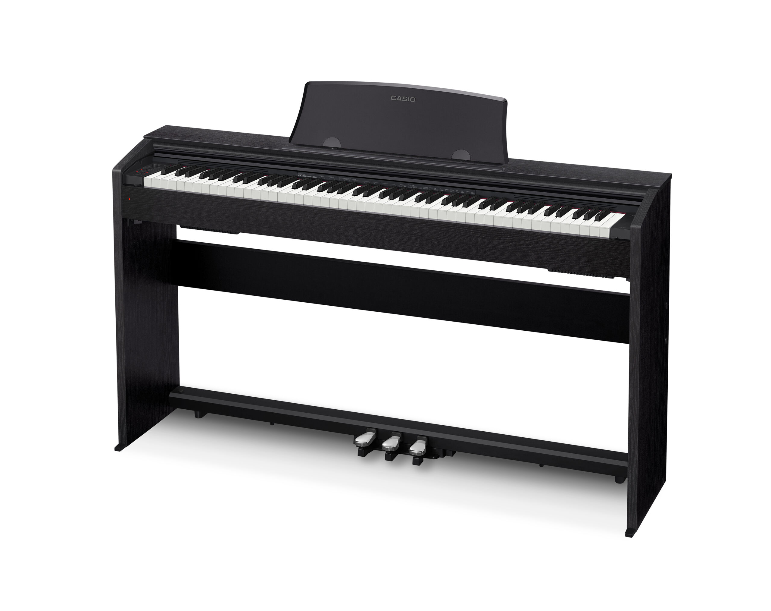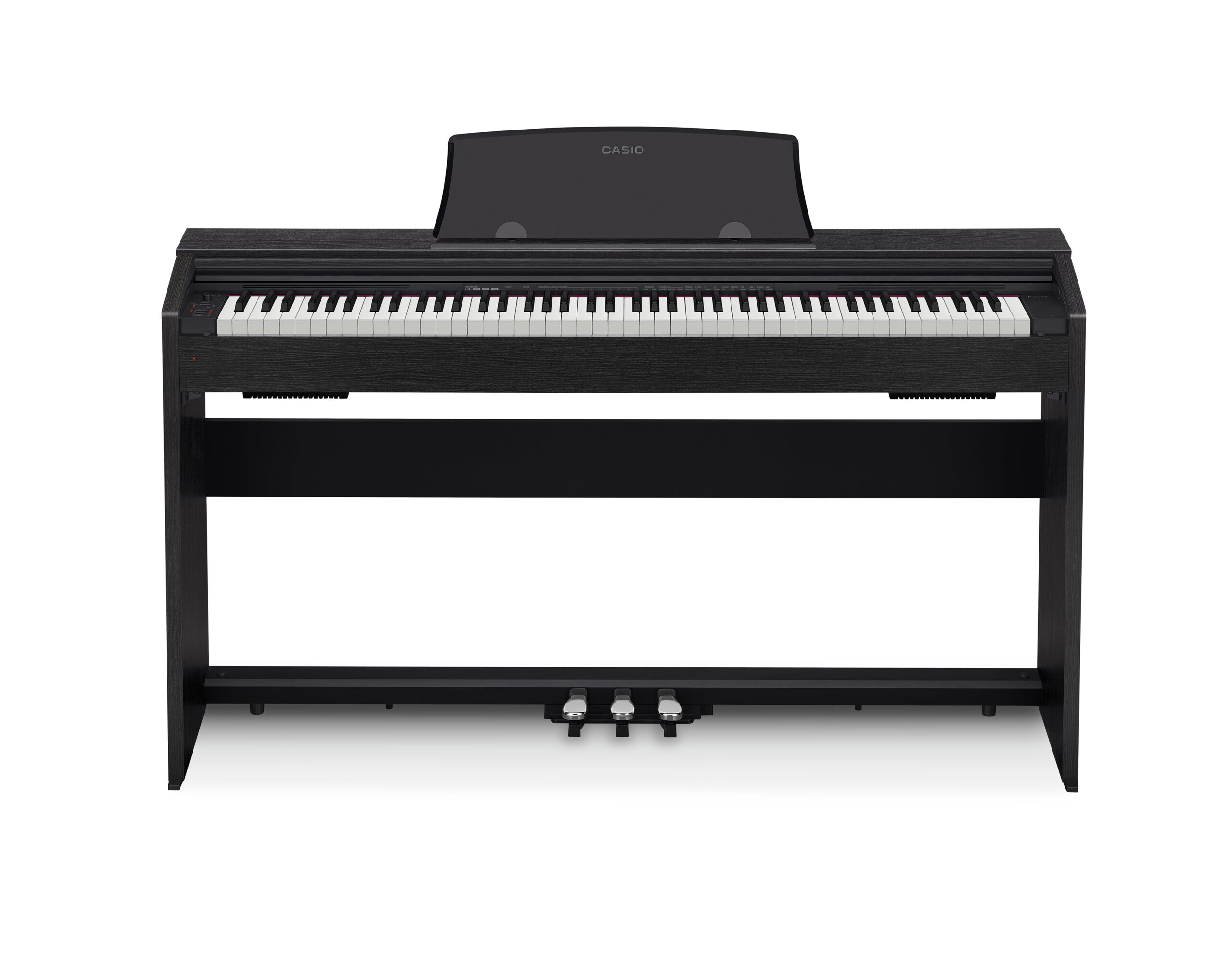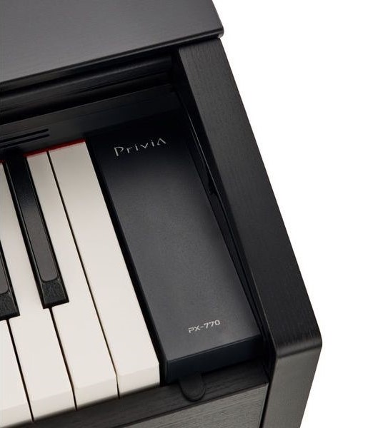Premier piano numérique meuble de Casio, le Px-770 propose de nouvelles sonorités pianos vraiment performantes. Sobre d’apparence, il est doté d’un nombre limité de fonctions et de sonorités ce qui le rend facile à utiliser. Ce modèle est un bon piano d’appoint, parfait pour le jeu nocturne ou pour une résidence secondaire. Ses qualités de toucher n’en font pas un piano idéal pour commencer l’apprentissage, un manque cruel de contrepoids sous les doigts empêchant un bon développement de la musculature. En revanche, il permettra à un joueur déjà aguerri d’accéder à d’autres plaisirs de pianiste, grâce à des sonorités variées et de qualité. Le meuble est objectivement joli, compact et de fabrication soignée, le tout pour un tarif très bien placé.