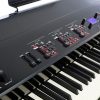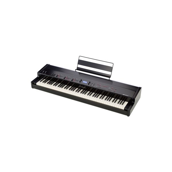 Ce Kawai MP-11 SE, conçu pour la scène, est doté d’un clavier lesté en bois véritable développant un toucher vraiment très satisfaisant. La qualité des 40 sons proposés et des nombreux effets et rythmes disponibles ravit d’emblée le pianiste qui y trouvera, parmi les nombreuses sonorités de pianos acoustiques et électriques surtout, l’instrument de circonstance selon le répertoire envisagé. Piano idéal pour la scène, il contentera les amateurs en recherche d’un très bon instrument d’appoint facilement transportable dont les sensations de toucher sont parmi les plus réalistes, tous pianos numériques confondus. Il est livré avec un pédalier 3 pédales GFP-3. C’est l’un des plus beaux claviers de scène du marché, garanti 5 ans de surcroît.
