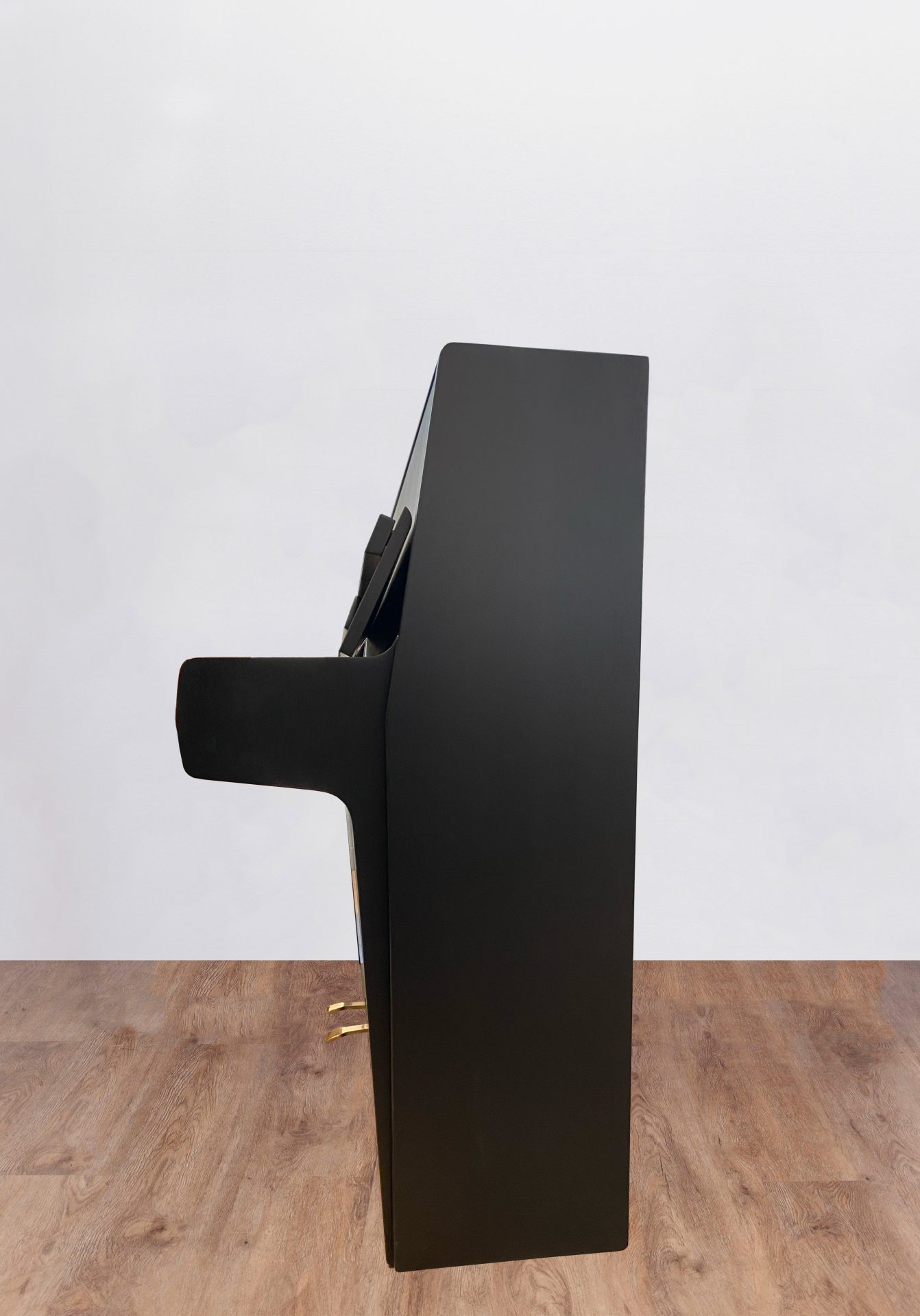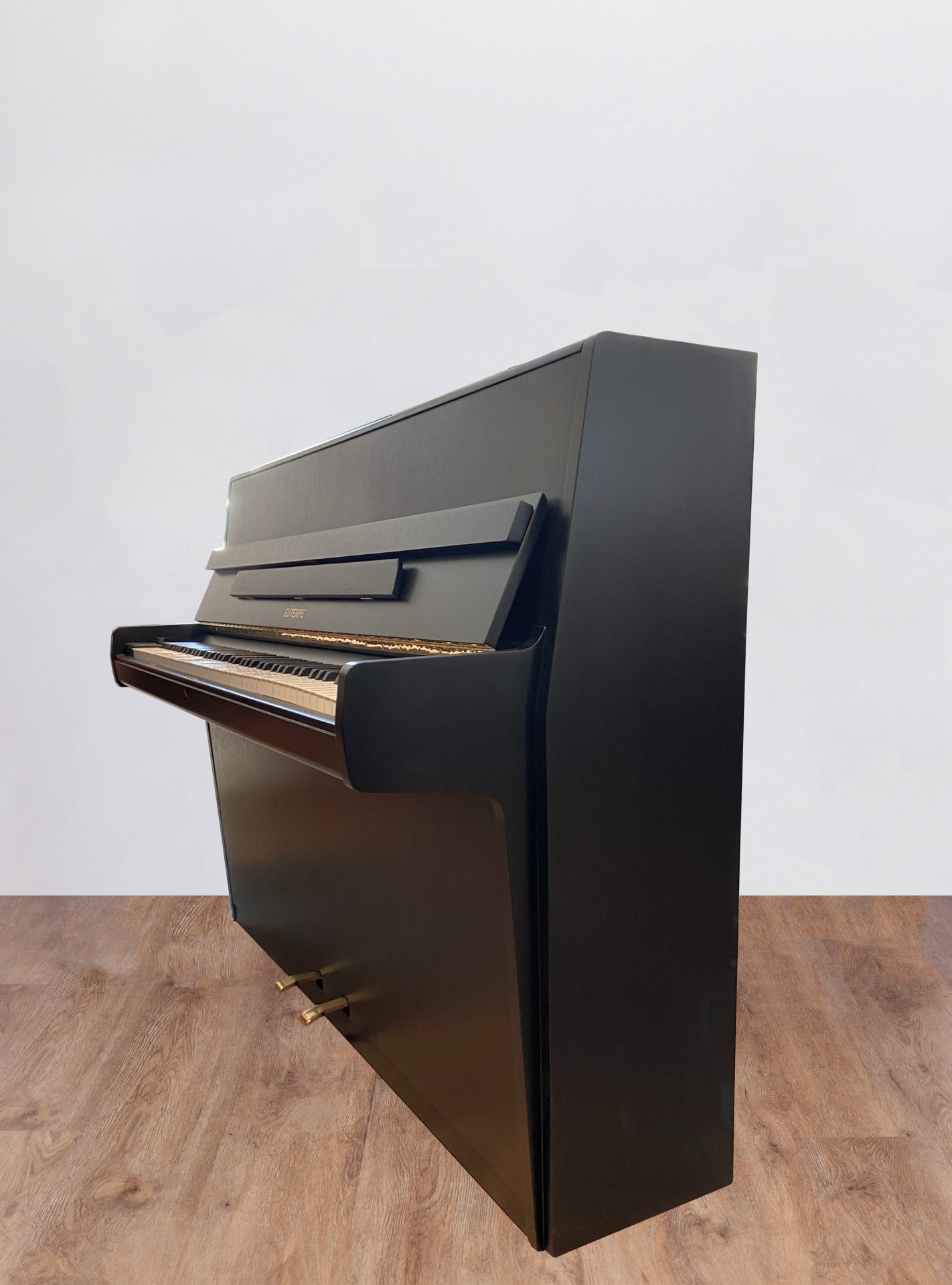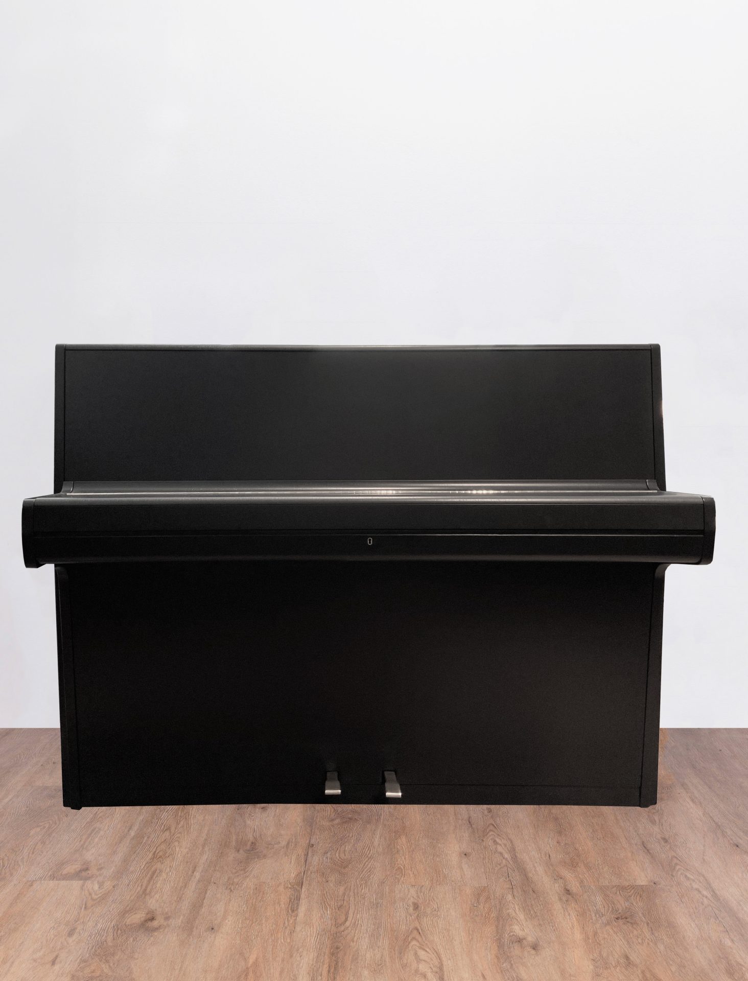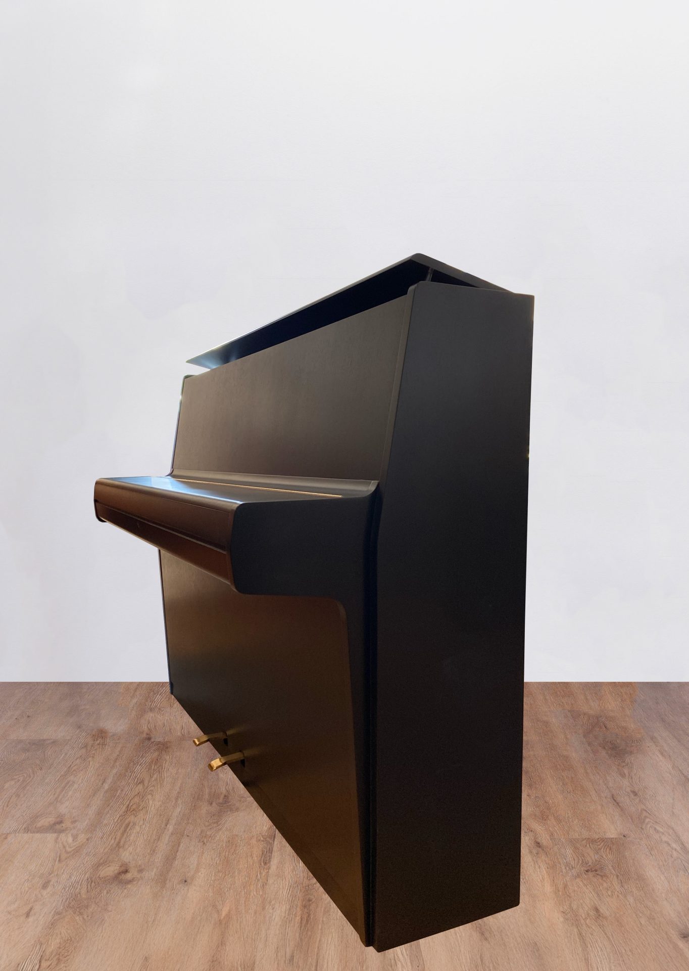 Voici un second piano euterpe, tout aussi exceptionnel que le premier, mais paré cette fois d’une finition noir mat à pores ouverts qui révèle toute la sensualité brute et authentique du bois : chaque fibre, chaque grain reste visible et palpable, offrant une texture vivante sous les doigts et une esthétique d’une élégance naturelle saisissante. lui aussi produit dans la prestigieuse manufacture de langlau avant son rachat par bechstein, ce second exemplaire témoigne de cette production artisanale bavaroise d’exception, limitée à quatre-vingts pianos par an seulement, sous les marques confidentielles feurich, euterpe et w. hoffmann réservées aux initiés les plus exigeants. entièrement restauré dans notre atelier avec la même minutie passionnée, son meuble a été délicatement repris pour préserver cette finition pores ouverts si particulière, où le noir mat sublime la beauté brute du bois sans jamais la masquer, créant un contraste saisissant entre modernité et authenticité. doté de la même table d’harmonie d’une élasticité remarquable et de matériaux sélectionnés pour leur qualité irréprochable, ce second euterpe offre une sonorité tout aussi profonde et nuancée, capable d’une richesse expressive extraordinaire dans les moindres nuances comme dans les passages les plus puissants. nos techniciens ont appliqué le même soin méticuleux à la restauration complète de sa mécanique et de son clavier, retrouvant ce toucher d’une sensibilité et d’une précision exceptionnelles qui fait la signature des grands instruments bavarois, garantissant une expérience musicale unique où chaque intention trouve sa parfaite expression sonore.
