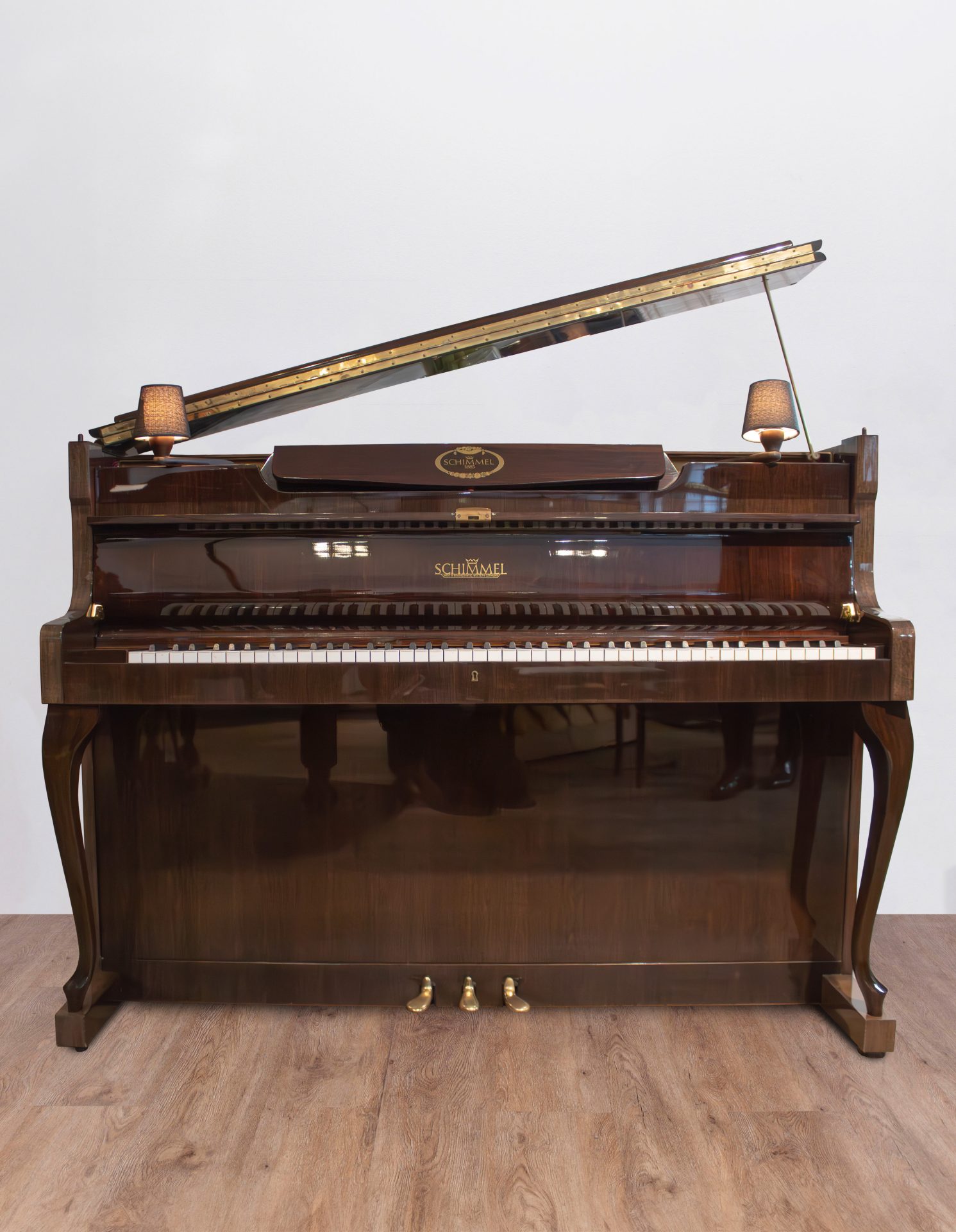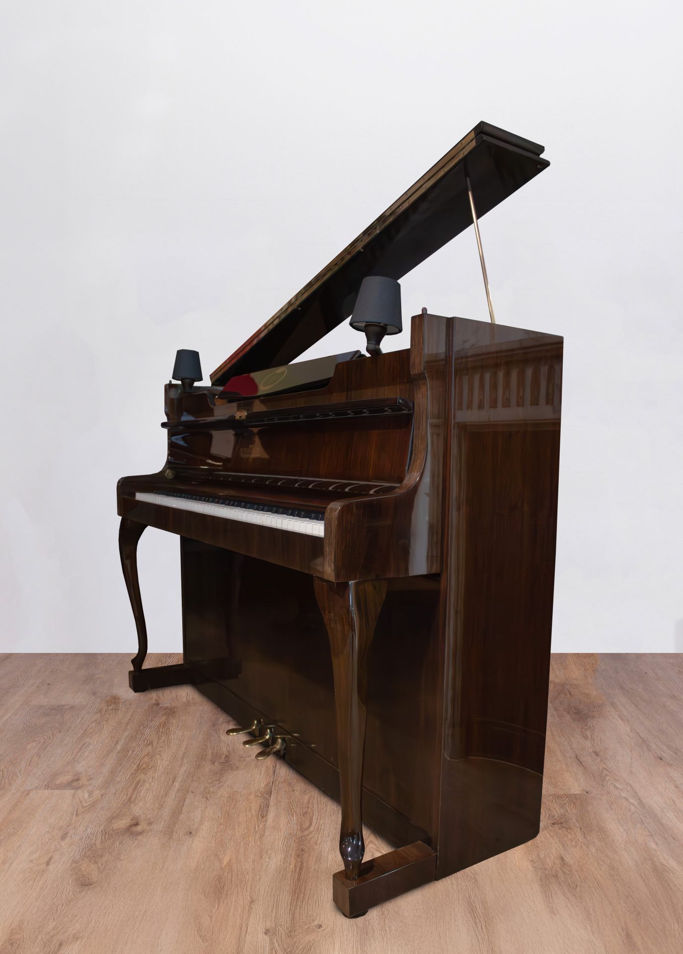 Ce piano schimmel lampes baroque, en noyer foncé brillant, est bien plus qu’un simple instrument : c’est une pièce d’exception alliant esthétique et musicalité, dont la restauration complète a été réalisée avec un soin inégalé dans nos ateliers. chaque étape de remise à neuf a mobilisé le savoir-faire de nos techniciens expérimentés et l’expertise de notre ébéniste, qui ont œuvré à redonner à ce modèle tout son éclat d’origine, en respectant les standards de qualité élevés de schimmel. mécaniquement, le piano a bénéficié de réglages précis et complets, avec une harmonisation minutieuse pour assurer une résonance uniforme et équilibrée sur l’ensemble du clavier. des accords de stabilisation ont été effectués pour retrouver une parfaite justesse, ainsi qu’un travail méticuleux sur la mécanique afin de garantir un toucher homogène, fluide et réactif, fidèle aux exigences des pianistes les plus expérimentés. parallèlement, l’ébénisterie de ce piano a fait l’objet d’une attention particulière. présentant initialement des marques d’usure, le meuble en noyer foncé brillant a été entièrement restauré : les placages usés ont été remplacés en respectant parfaitement l’essence et la finition d’origine, puis le vernis a été poli et relustré, révélant une profondeur et un éclat remarquables. l’ajout de lampes baroques, harmonieusement intégrées, sublime l’élégance naturelle de ce piano et en fait un véritable objet de décoration raffiné qui s’intègre idéalement à des ambiances classiques ou contemporaines. au-delà de son esthétique, ce schimmel se distingue par sa sonorité riche, chaleureuse et typiquement romantique. ses basses profondes et enveloppantes, ses médiums pleins et expressifs, ainsi que ses aigus lumineux et précis font de cet instrument un partenaire idéal pour tous les répertoires, du classique au moderne. que vous soyez amateur ou musicien confirmé, ce piano saura répondre à vos exigences en vous offrant des sensations de jeu inégalées et une large palette dynamique pour vos interprétations. livré partout en france avec un luxueux pack d’accessoires offert, ce schimmel est couvert par une garantie de 10 ans, gage de la fiabilité du travail accompli sur cet instrument. c’est une occasion rare d’acquérir un piano unique, alliant la précision allemande et une restauration artisanale d’exception, qui saura enrichir votre pratique musicale tout en apportant une touche de prestige à votre espace.