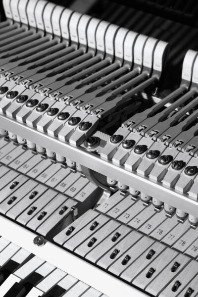 parallélisme : étape de pré-réglage permettant aux différentes pièces de mécanique de chaque note d’être parfaitement parallèle à celles des notes voisines.